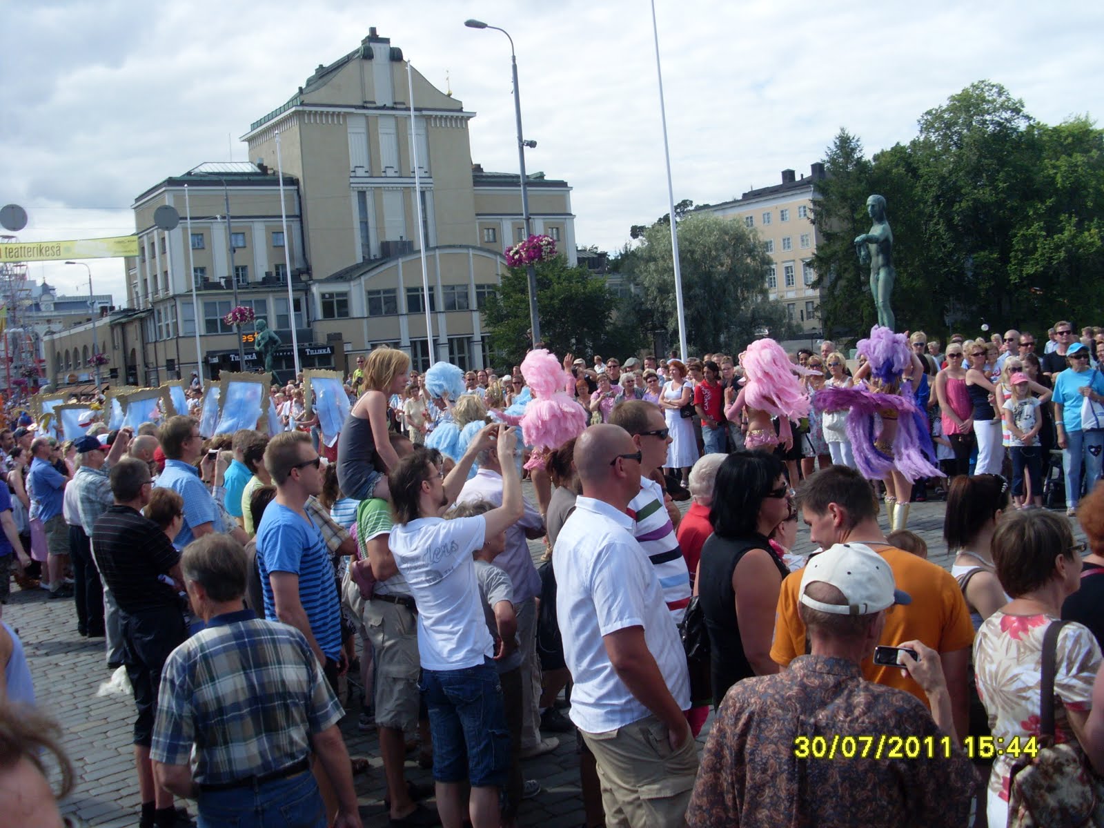 Sambaava kukkaiskulkue jakoi kesäiloa kanssamme sambaten ja tanssien pitkin Hämeenkatua